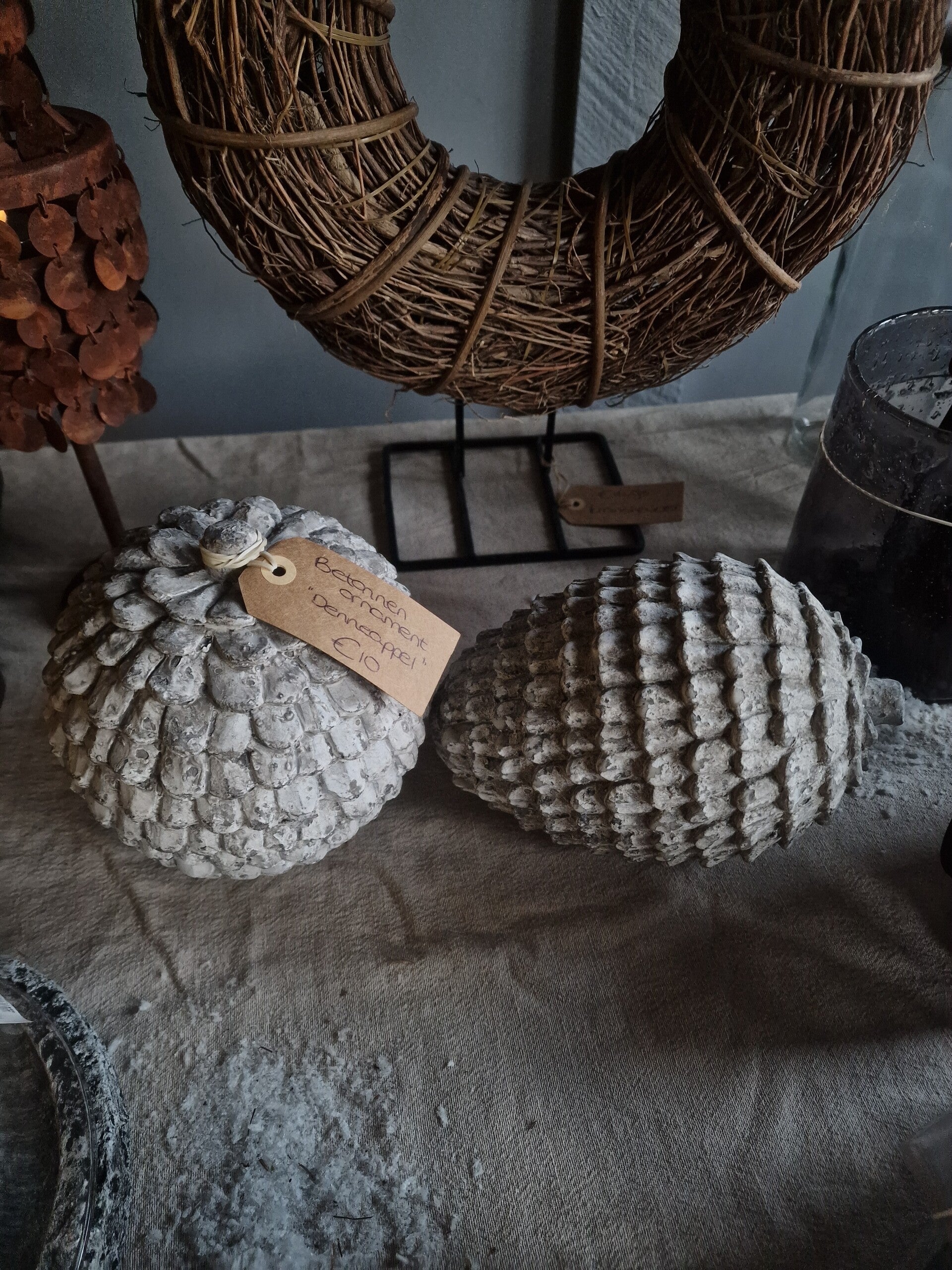 Betonnen ornamenten "denneappel"